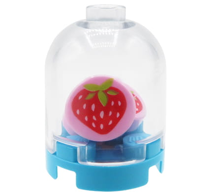 Transparente Keksdose mit drei Erdbeerkeksen. Das Produkt besteht aus 100 % neuen, originalen LEGO Markenteilen. Ungefähre Abmessungen: 1,5 cm x 1,5 cm x 2,2 cm