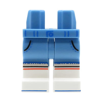 LEGO Minifigurenbeine – blaue Hose, weiße Stiefel. Die Beine sind neu und stammen aus einem originalen LEGO Set.