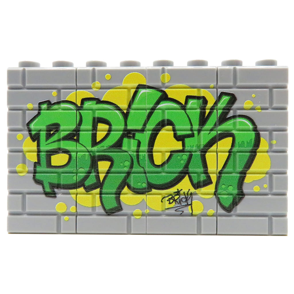 Graffiti „Brick“ in Grün ist unser originaler custom print, erstellt auf 16 grauen LEGO® Steinen 1x2. Entworfen und bedruckt in unserem Studio mit professioneller UV-Drucktechnologie. Ein langlebiger, hochwertiger Druck, der gewöhnliche LEGO® Steine in einzigartige custom Elemente verwandelt. Perfekt für Fans von Personalisierung, außergewöhnlichen Drucken und kreativen Spielen mit LEGO® Teilen.