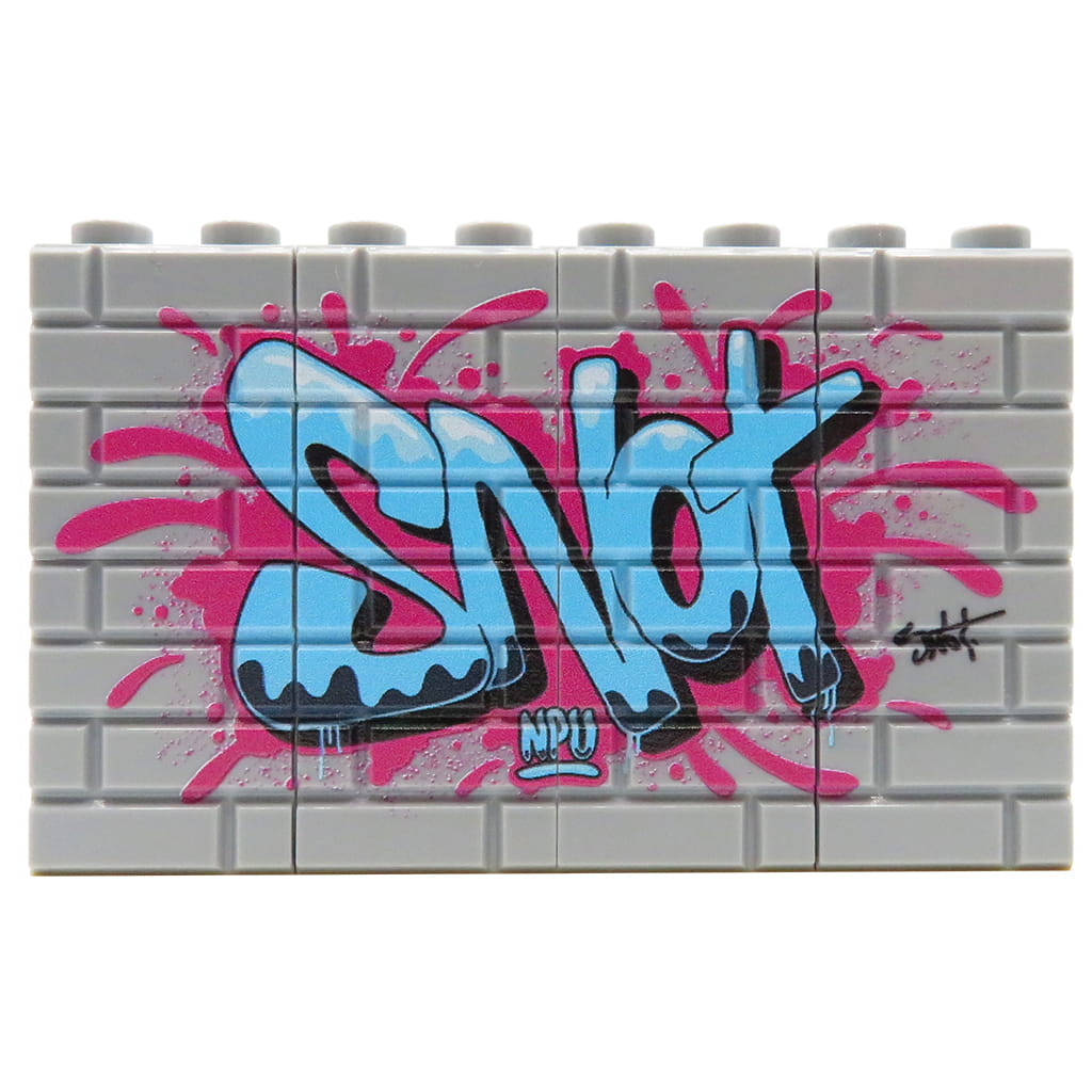 Graffiti „Snot“ in Blau ist unser originaler custom print, erstellt auf 16 grauen LEGO® Steinen 1x2. Das Graffiti wurde in unserem Studio entworfen und mit professioneller UV-Drucktechnologie aufgebracht. Ein langlebiger, hochwertiger Druck, der gewöhnliche LEGO® Steine in einzigartige custom Elemente verwandelt. Perfekt für alle, die nach außergewöhnlichen Drucken für ihre custom Builds und Sammlungen suchen.