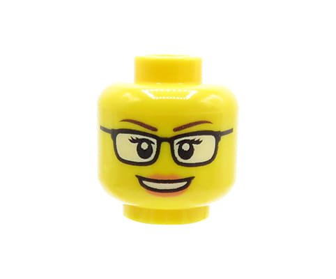 Kopf einer LEGO Minifigur – Frau, Brille, Lächeln