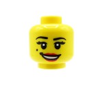 Kopf einer LEGO Minifigur – Frau, Lächeln, Schönheitsfleck, rote Lippen