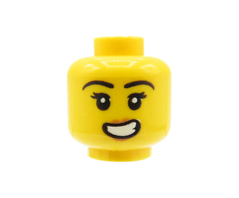 Kopf einer LEGO Minifigur – Frau, offenes Lächeln
