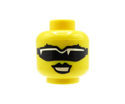 Kopf einer LEGO Minifigur – Frau, schwarze Sonnenbrille und Lippen