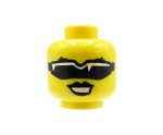 LEGO Minifigurenkopf – Frau, schwarze Sonnenbrille, schwarze Lippen, Lächeln mit Zähnen. Kopf neu, stammt aus einem originalen LEGO-Set.