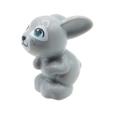 LEGO Friends sitzender Hase / Kaninchen - hellblaugrau mit türkisfarbenen Augen und schwarzer Nase. Hase neu, stammt aus einem original LEGO Friends Set.