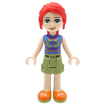 LEGO Friends Minipuppe – Mia – olivgrüne Shorts, dunkelviolettes Oberteil mit Rauten, rote Haare (Pferdeschwanz). Brandneue Minifigur aus einem originalen LEGO-Set. Die Minifigur ist in einem Druckverschlussbeutel verpackt (Bitte beachten Sie, dass das Produkt keine offizielle LEGO-Verpackung enthält).