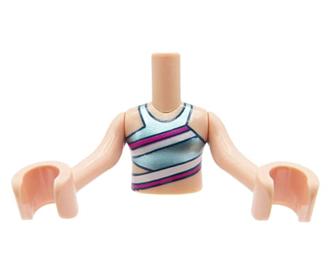 LEGO Friends Minifiguren-Torso – metallisches Badeanzugoberteil mit Streifen, hell-nougatfarbene Arme. Torso neu, stammt aus einem originalen LEGO-Set.