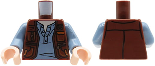 LEGO Minifiguren-Torso – braune Weste mit Taschen, sandblaues Hemd. Torso neu, stammt aus einem originalen LEGO Set.