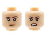 LEGO Minifigurenkopf – Frau, helles Nougat, Sommersprossen, doppelseitig (leichtes Lächeln / wütend). Kopf neu, stammt aus einem originalen LEGO Set.