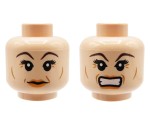 LEGO Minifigurenkopf – Frau, helles Nougat, Falten, doppelseitig (lächelnd/wütend). Kopf neu, stammt aus einem originalen LEGO-Set.