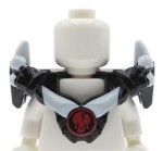 Schwarzer LEGO Ninjago Brustpanzer mit weißen Schulterstacheln und rotem Totenkopf. Die Rüstung ist neu und stammt aus einem originalen LEGO Ninjago Set.