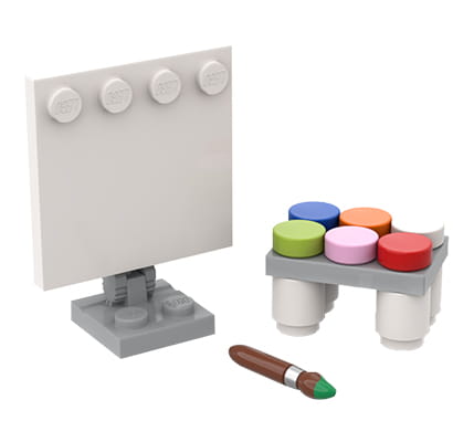 Malset aus LEGO Steinen bringt Abwechslung ins Spiel der Kinder mit LEGO Figuren und macht Gebäude aus LEGO oder vorhandene Sets attraktiver. Es eignet sich auch perfekt als Geschenk für einen LEGO Fan (Kinder und Erwachsene), Künstler, Cartoonisten, Maler, Kunstlehrer oder einfach jemand, der gerne zeichnet. Es ist auch eine originelle Dekoration fürs Zuhause, zum Beispiel auf einem Regal oder Schreibtisch.