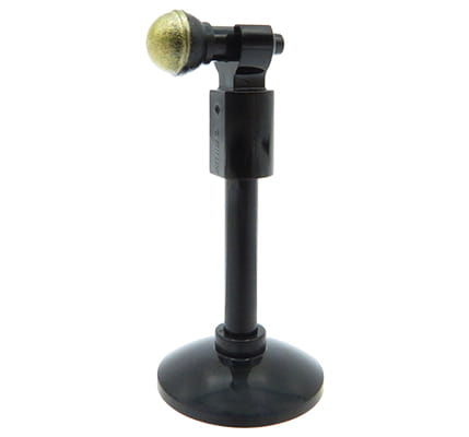 Schwarz-goldenes Mikrofon auf schwarzem Ständer. Das Mikrofon besteht aus 100 % neuen, originalen LEGO-Markenteilen.