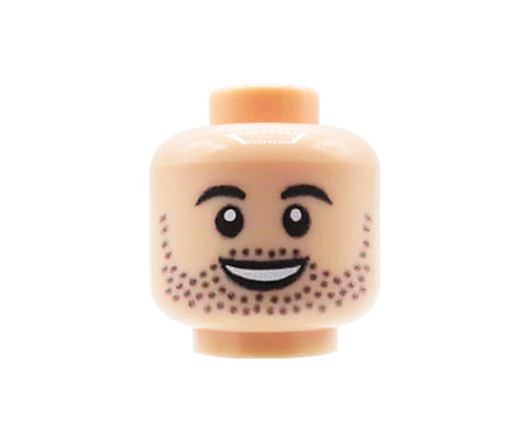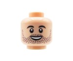Custom Minifigurenkopf – light nougat Gesicht, männlich mit leichten Bartstoppeln und einem breiten Lächeln.
