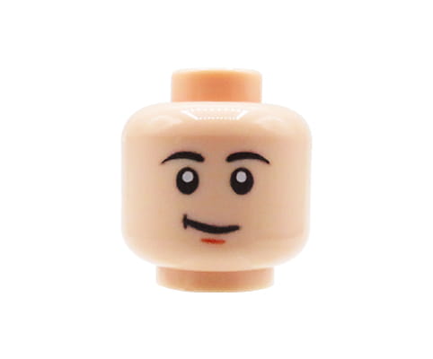 Custom Minifigurenkopf – light nougat Gesicht, männlich mit einem frechen Grinsen.