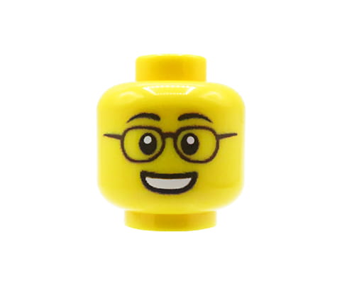 Minifiguren-Kopf (männlich, Brille und Lächeln, gelb) – Custom Druck auf LEGO® Kopf