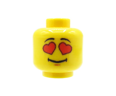 Custom LEGO® Figurenkopf – gelbes Gesicht, Mann mit heart eyes.