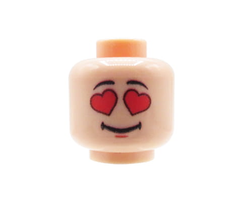 Custom Minifiguren-Kopf – Mann, Liebesaugen Herzen, hautfarbenes (Light Nougat) Gesicht.