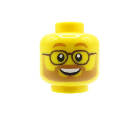 Minifiguren-Kopf (männlich, heller Bart und Brille, gelb) – Custom Druck auf LEGO® Kopf