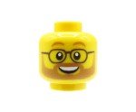 Custom Minifigurenkopf – gelbes Gesicht, männlich mit hellem Bart, Schnurrbart, Brille und einem breiten Lächeln.