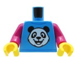 Custom Minifiguren-Torso – blaues Shirt mit rosa Ärmeln und aufgedrucktem Pandakopf, gelbe Hände.