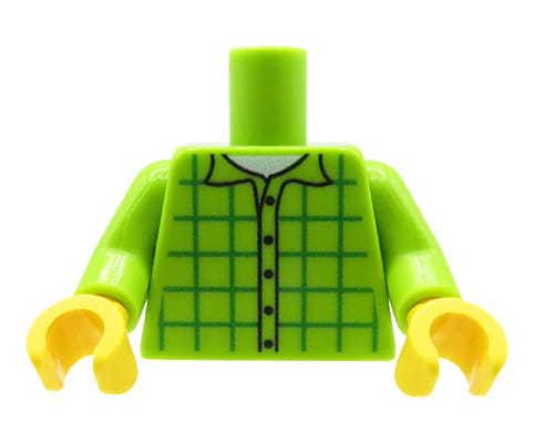 Custom Minifiguren-Torso – grünes / limonengrünes kariertes Hemd, gelbe Hände.