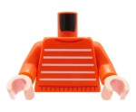 Custom Minifiguren-Torso – rot-oranger Pullover mit weißen Streifen, hautfarbene (light nougat) Hände.