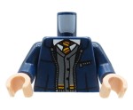 LEGO Minifiguren-Torso – dunkelblaue Jacke, graue Weste, weißes Hemd und gestreifte Krawatte. Der neue Figurentorso stammt aus einem originalen LEGO-Set.