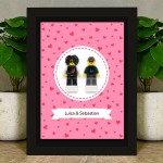 Gestalte deine eigene Personalisierte Figuren aus LEGO® Teilen in einem dekorativen Rahmen. Ein berührendes personalisiertes Geschenk für ein verliebtes Paar – Freund und Freundin, Mann und Frau oder Verlobte. Perfekt zum Jahrestag, zum Valentinstag oder zur Verlobung.