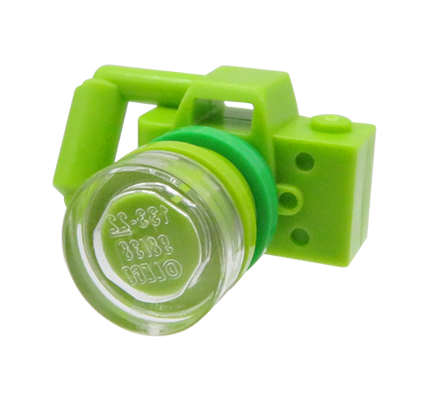 Appareil photo avec objectif - citron vert. Appareil photo composé à 100 % de pièces LEGO neuves et authentiques.