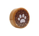 Biscuit / snack pour chien LEGO - rond, nougat moyen avec patte d'animal blanche. Biscuit neuf, provient d'un ensemble LEGO original.