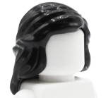 Cheveux de figurine LEGO - femme, noirs, longs, tressés sur les côtés. Cheveux neufs, issus d'un ensemble LEGO original.