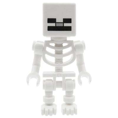 Minifigure LEGO Minecraft - Squelette - blanc avec crâne cubique. Minifigure neuve, issue d'un ensemble LEGO original. La figurine est emballée dans un sac ziplock (veuillez noter que le produit n'inclut pas l'emballage LEGO officiel).