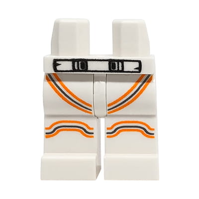 Jambes pour figurine LEGO - pantalon blanc avec ceinture et imprimé. Jambes neuves, provenant d'un ensemble LEGO original.