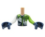 Torse de figurine LEGO Friends : vert citron, veste blanche et bleu foncé, gants bleu foncé, col nougat clair. Torse neuf, issu d'un ensemble LEGO original.