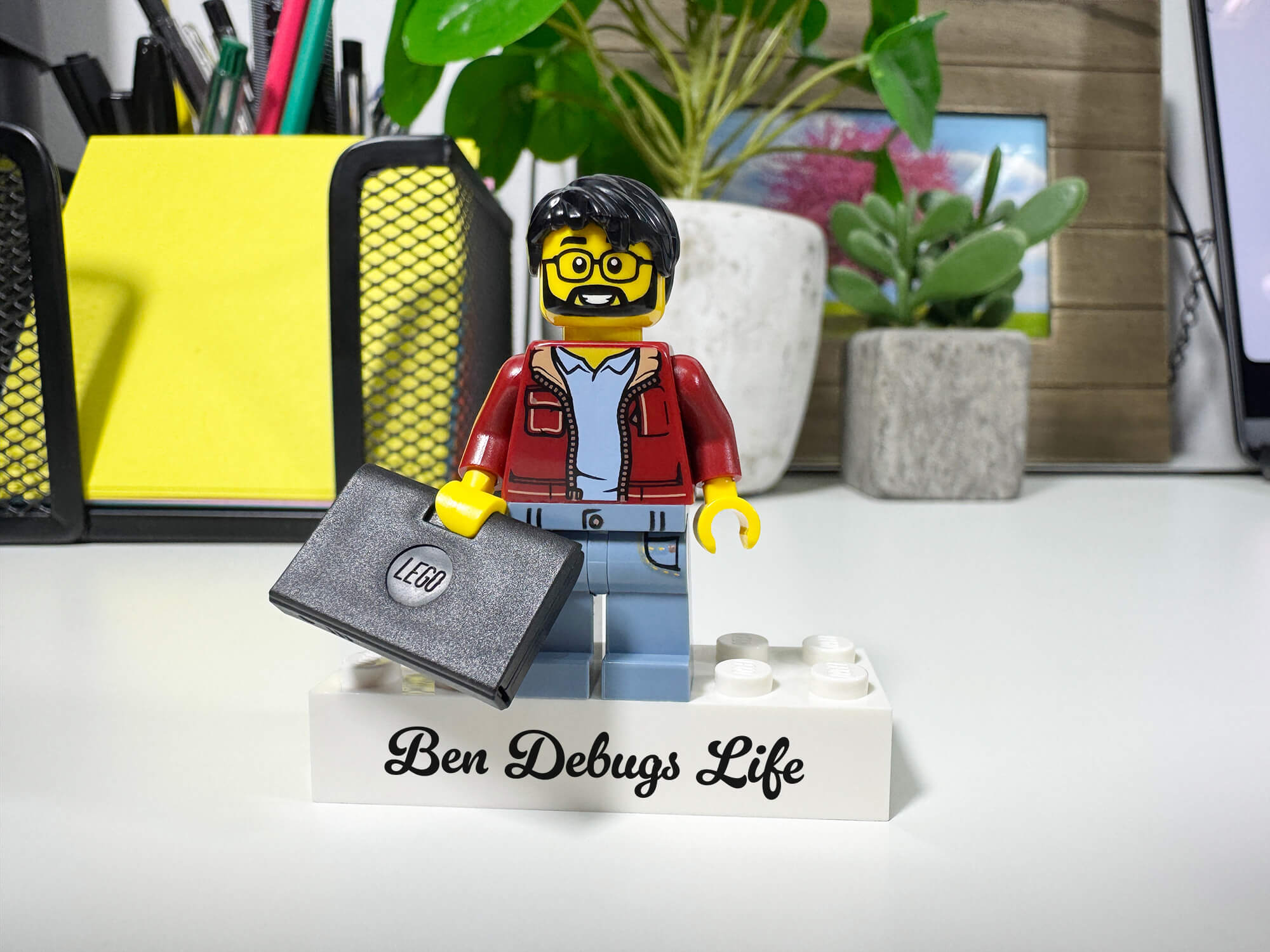 Cette figurine personnalisée à partir de pièces LEGO® est le cadeau parfait pour un programmeur, un spécialiste IT ou un passionné de technologie. Une figurine personnalisée avec ton propre texte et des accessoires thématiques est un présent original et amusant pour un anniversaire, Noël, la Journée des petits amis – ou simplement comme surprise geek sans occasion particulière.