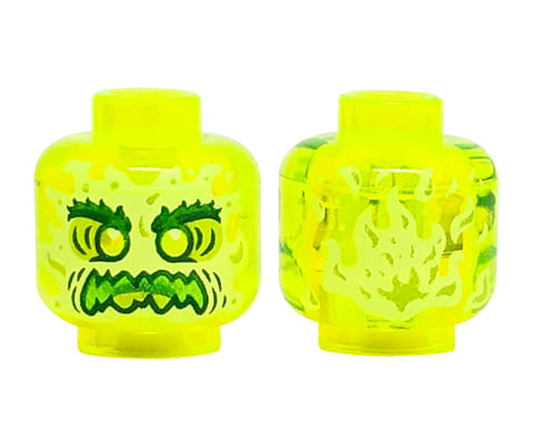 Tête de minifigure LEGO - fantôme / alien - vert fluo transparent. Tête neuve, issue d'un ensemble LEGO original.