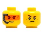 Tête de minifigure LEGO - homme, double face (casque/colère). Tête neuve, issue d'un ensemble LEGO original.