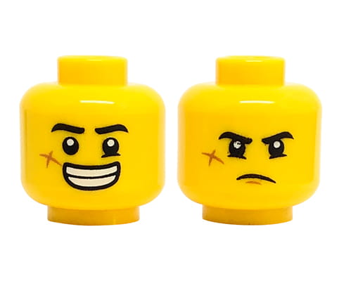 Tête de figurine LEGO - homme, cicatrice sur la joue, double face