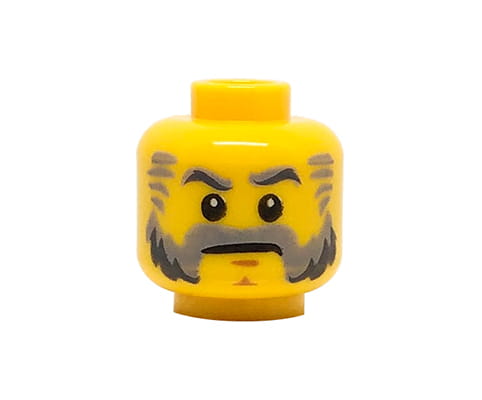 Tête de figurine LEGO - homme, favoris gris, moustache
