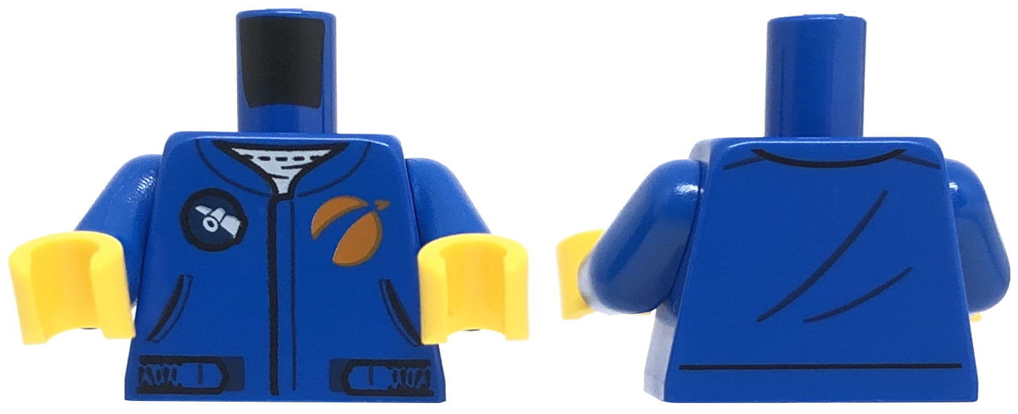 Torse pour minifigure LEGO : veste bleue/combinaison d'astronaute avec logo satellite blanc. Torse neuf, issu d'un ensemble LEGO original.