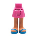 Nogi figurki LEGO Friends krótka spódnica w kolorze różowym (dark pink), niebieskie klapki, cieliste (nougat) nogi. Nóżki nowe, oryginalne, pochodzące z jednego z zestawów LEGO.