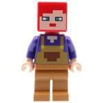 Minifigurka LEGO Rolnik / Farmer - jasne brązowe ogrodniczki, fioletowa bluzka, czerwona głowa. Ludzik nowy, oryginalny, pochodzący z jednego z zestawów LEGO Minecraft