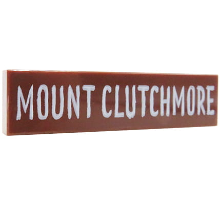 LEGO drogowskaz MOUNT CLUTCHMORE - płytka 1x4 w kolorze brązowym (reddish brown) z nadrukiem. Element nowy, oryginalny, pochodzący z jednego z zestawów LEGO.