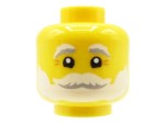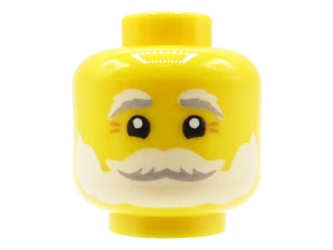 Głowa figurki LEGO w kolorze żółtym, męska / dziadek, biała broda i wąsy. Główka nowa, oryginalna, pochodząca z jednego z zestawów LEGO.